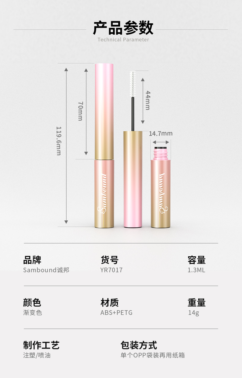 迷你小細(xì)管睫毛膏空管化妝品包材注塑件特點(diǎn):可定制刷頭,旋轉(zhuǎn)螺紋開(kāi)關(guān),瓶口加內(nèi)塞,可定制表面工藝,容量1 2ml,誠(chéng)邦化妝品包材注塑廠家。